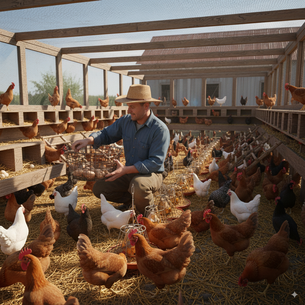 Criamos principalmente pollos y gallinas en un entorno controlado y saludable, garantizando la calidad de la carne y los huevos.